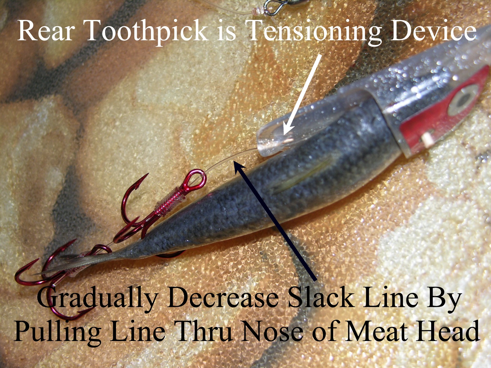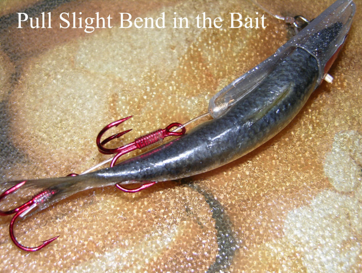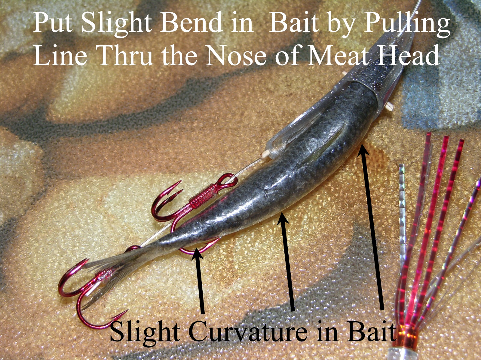 looping roll. Final tweaks and visual tips that guarantee success! If one picture is supposed to be worth a thousand words, then my short movies will speak volumes. Whole bait is very EZ to run. The above steps can have your bait in the water in less than 30 seconds. Whole bait is always more readily available than commercial strips and offers a double sided more natural looking presentation. As demonstrated in the below videos with fishing
