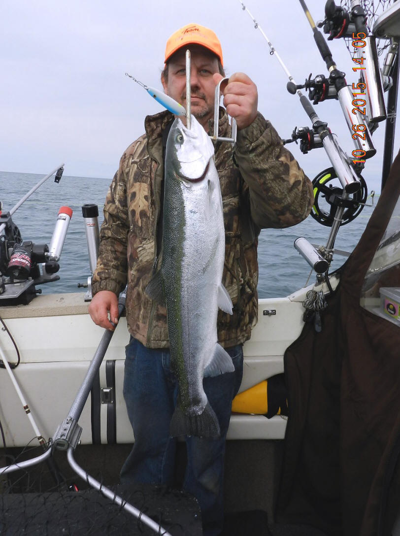 Winning Head Games Great Lakes fishing requires a fair amount dedication. How else can you explain it with the expense involved? Owning a boat is no cheap proposition. Learning the ins and outs don't happen overnight. Being successful begins with preparation. Like reading this article and gleaning all the knowledge that comes with it. Most important is not to become "set in your ways." There are new methods, technology, and tackle that wasn't even a distant dream when I began fishing Lk. MI back in 1968. New stuff comes out all the time. Being open minded cannot be stressed enough. As long as you sprinkle in some "prove it to me," ....you'll do just fine. Success breeds confidence, or is it the other way around? Cold water species (Trout & Salmon) Great Lakes fish are easy to catch. Because they're aggressive eating machines with a fantastic growth rates. Please keep in mind, info supplied here is the way that works for me, but not the only way. There's only 2 wrong ways to fish: 1. is by not doing enough of it! 2. is to think your way, is the only way. Hoity-toity speculation has little to do with fishing. It's what's on the end of your line that counts. The reel-truth tells us all methods lead to the same place. Some just get there ...a little quicker than others. If you've never been as successful, as hoped for when targeting Great Lakes surface fish? ...there's 8 info packed pages here. Covering everything I know in clear detail. As this article was being born, it became 1000% evident that each ingredient deserved it's own page to clearly focus on all the parts and pieces to effectively target Great Lakes surface fish! |