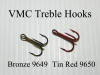 While hooking any fish off both kinds of boards has it's challenges, it's the big boards spongy tag line that needs special attention. The tag line to the board is very flexible and does not provide a hard point like riggers, or divers do. This is compounded by having the right release that needs to be soft enough to react to the hit. Been all over the place on board release and found the small Black Offshore releases to suit my needs best. Key is to hard press the line into these Offshores. Small Red Offshores will probably do the job too. Used #16 rubber bands and a shower hook. OK, if it's a big fish? ...but small fish like the 2-4 pound Browns we deal with in Manistee during April? ...these small guys don't have the scoot in their britches to break #16 bands. Then, if the band don't break, you're faced with retrieving all the other lines to trip the rod with the small fish attached. Ok, now for the hooks and this is very important. I found superior results with VMC 9649 Bronze trebles. There is no second best when it comes to towing big boards. 9649s will turn most of your Steelhead bites into prisoners, not escapees. The wire in this hook is slightly thinner than the VMC 9650 trebles are other options for our spoons. That hook is a 3X #9650. Same VMC round bend style, but the wire diameter is about .009 thicker when compared to the lighter wire version, the 9649. 9649s come stock on many of crankbaits made for the Bass market. Just keep in mind, 9649s are not goat rope hooks made to whoa 30 pound rampaging Kings while on harbor patrol. In open water, with just a little finesse, 9649s will land ANY fish in the Great Lakes! With hooks it's all about penetration of a correctly sharpened hook. Never seen any hook out of the package that does not benefit from a light touch-up with a good hook file. I buy hooks in the 1000s. All packed in a box that during shipping get jostled around during handling. No matter how sharp the hook was before it went into the box, the hooks rubbing together has to dull, even ...ever-so-slightly a hook point that was super laser sharp when it left the factory sharpening process. This BS about hooks sharp right of of the box is more of a sales talking point, than the reel-truth! Click archived hook article The Reel Truth In a