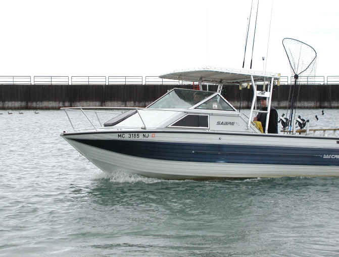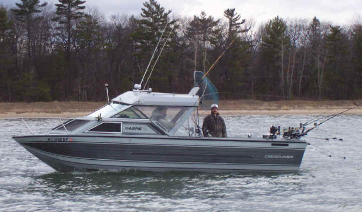 "Bobby's Toy" is a 1987 225 Saber Crestliner with a 165 Mercruiser enclosed cooling I/O.  Equipment is as follows: Lowrance X-85 fishfinder, Ray Marine 320 GPS/Chartplotter, 840 Fish Hawk. Atlantic Towers hard top with rocket launcher and spreader lights with full customer enclosure, 4 manual Luhr Jenson Downriggers and 8 rod holders, 6 Tite -Loc adjustable rod holders. I fish all major ports with my fish club, the Detroit Area Steelheaders. Lake Michigan is my favorite lake, Manistee and Ludington are my favorite ports.......Capt. Bob Jones