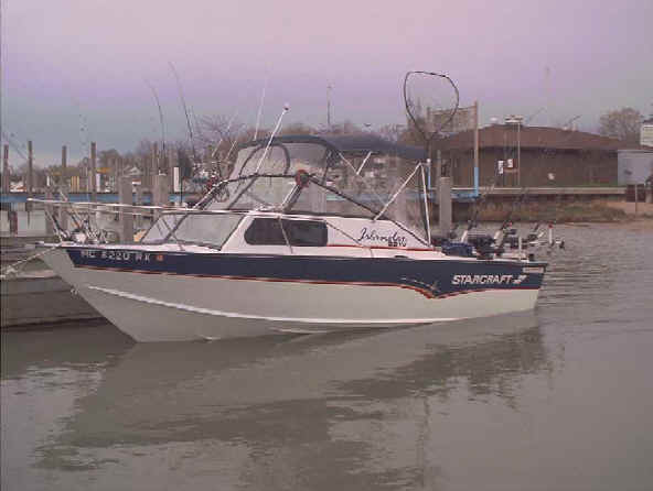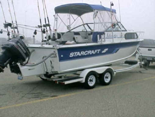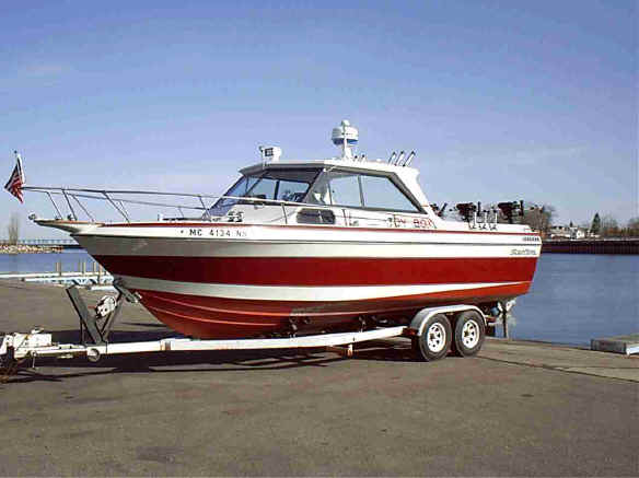 1978 Starcraft , 25ft Length. 165hp Mercruiser I/O, Hummingbird fishfinder, and Hummingbird GPS, Cannon elect. riggers, Penn Rods and Daiwa Reels. Hummingbird VHF handheld. Boat has head, fridge, stove, full shore power connection (including cable TV), and sleeps two comfortably for overnights.  I acquired entire rig and gear (with trailer) from widow in Onekama for $5000 3 years ago. I though I'd died and gone to heaven, however...I've just died and gone fishin'.......Capt. Dick Wettergreen