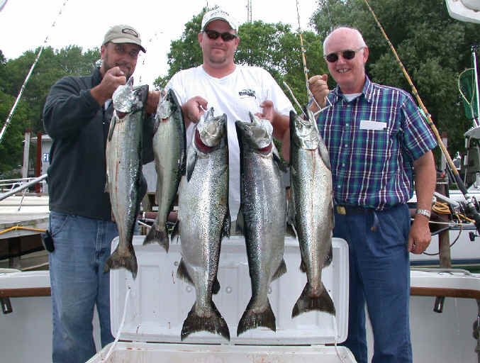 before I updated the website this last evening. Manistee still has pretty decent fishing for Kings in the deeper waters off the shelf. Look to 250 to 400 feet to find the Salmon. I heard from a boat that fished 4 hours for 12 Kings on 6/3/04.