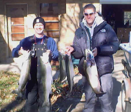 11/25/04 Stefan and Ted stopped by my house yesterday afternoon. They had finished chasing Steelhead on the Big M and needed some flashers. When I asked if they had caught, the reply was YES! So, I grabbed my camera for some fresh photos. Both of these gentlemen become infected with river fishing disease on a river trip
