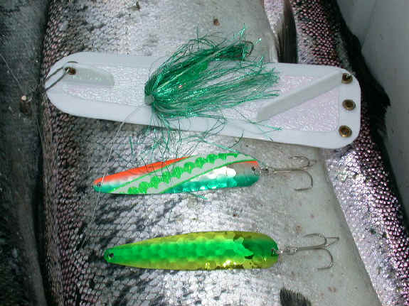 6/20/03  I had a very enlightening conversation with Randy Even last evening.  Randy who makes the Slide Diver, also charters on the Wisconsin side across from Manistee.  Their problem there, is exactly the opposite of ours.......too much bait!