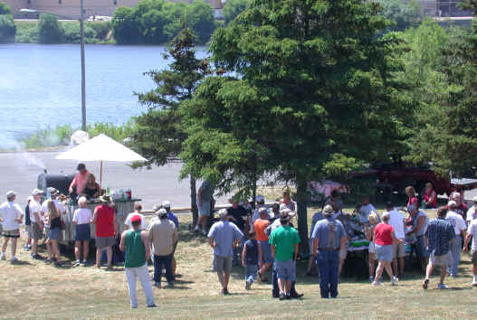 Overall the weather and the Lake Trout cooperated. The only place King Salmon were plentiful was at the seafood counter at Oleson's Market here in Manistee for only $5.99 a pound.  Our King Salmon catch was off by about 70% when compared to last year and I will furnish data to confirm that fact.  We served over 100 people at the picnic and a good time was shared by all.   A very special thanks goes to Karen and Aaron for the use of their professional outdoor barbeque and serving stand.  Click here for the picnic photo