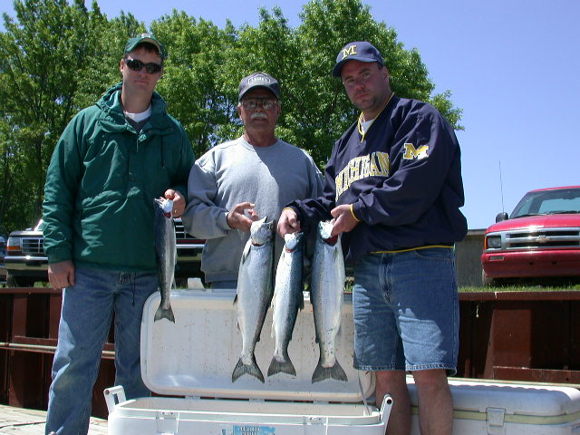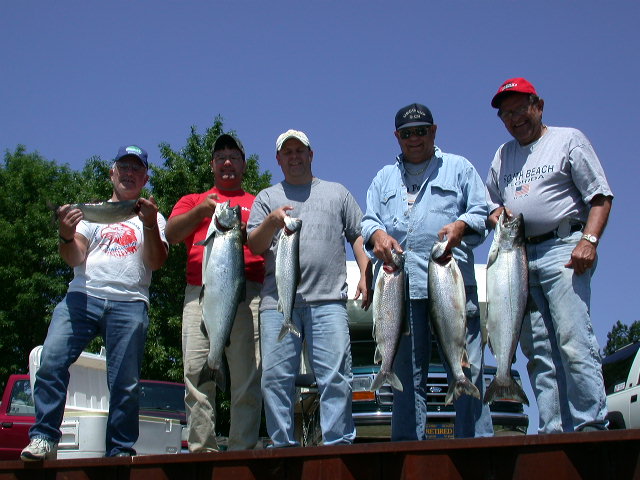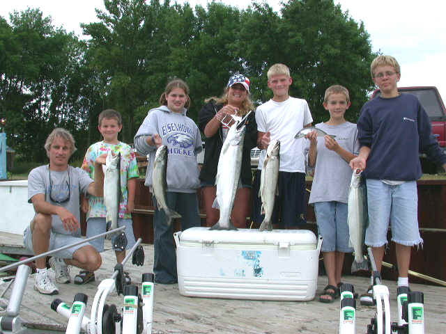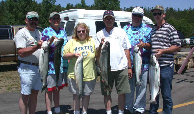 6/12/03  I'll be fishing with the DeGrandchamp crew today.  The ironic thing about today's event is that the DeGrandchamps own a major nursery and blueberry farm in South Haven, Michigan.  I had a awesome trip in 2002 with these anglers and I doubt if I can top our results on 6/6/02, but I'm sure gonna try.  We boxed 15 fish in short order with several Kings approaching the 20 pound mark.  Complete report will be published later this evening.