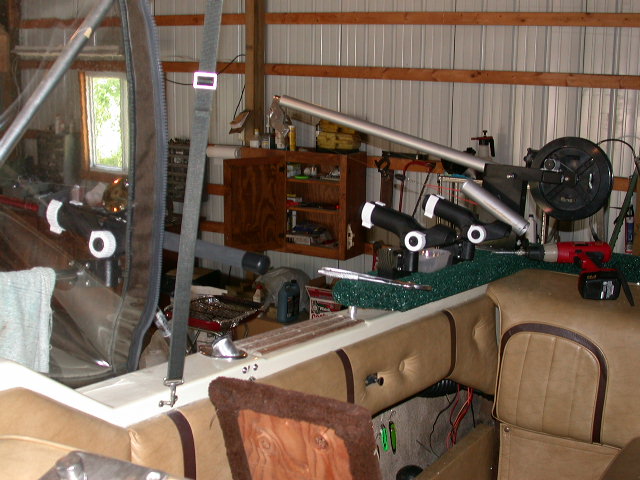 6/25/03  Spent part of the day helping John J re-do his fishing set up on the Megan Ann.  This is the background work for the article on improving the way boats from 18 to 25 feet troll.  We complete redone his spread and it will be one fish killing machine once it's finished.  The good part is we added 6 rod holders and a completely new trolling board for way under 200 bucks, so this was done on a tight budget.  What made this an interesting project for me is that we made simple changes to enhance the fish-ability 23 foot 4-Winns and used outdated riggers too.