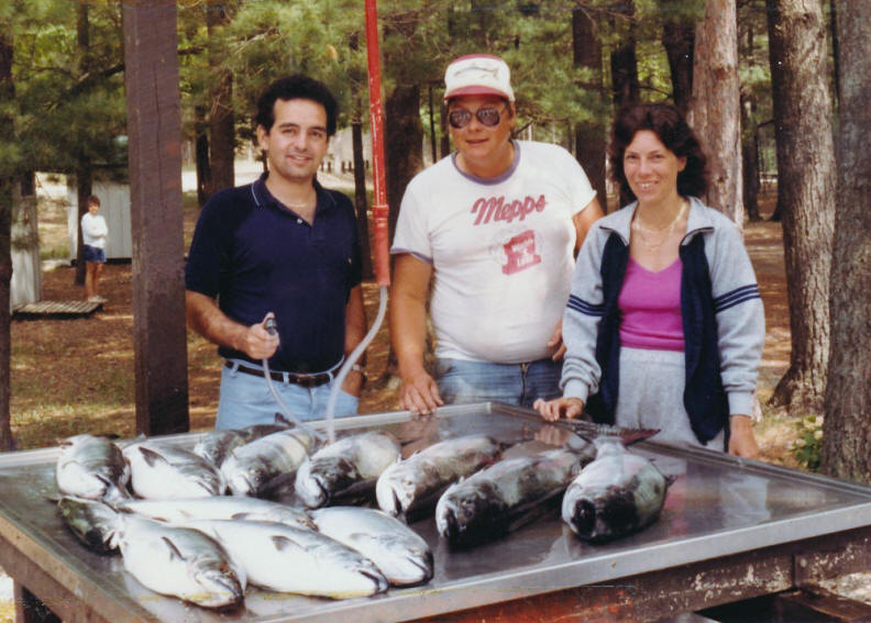 The 1979 meat table catch of Paul, myself & my wife Merlene came mostly on outriggers towing small Deep Six divers close to the pier heads in Frankfort MI.