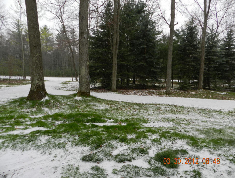 Snow, then rain with temps in the 30s changed my mind about fishing Lk. MI today.  Next week says better days are on the horizon. Click Manistee 3/30/12 snow