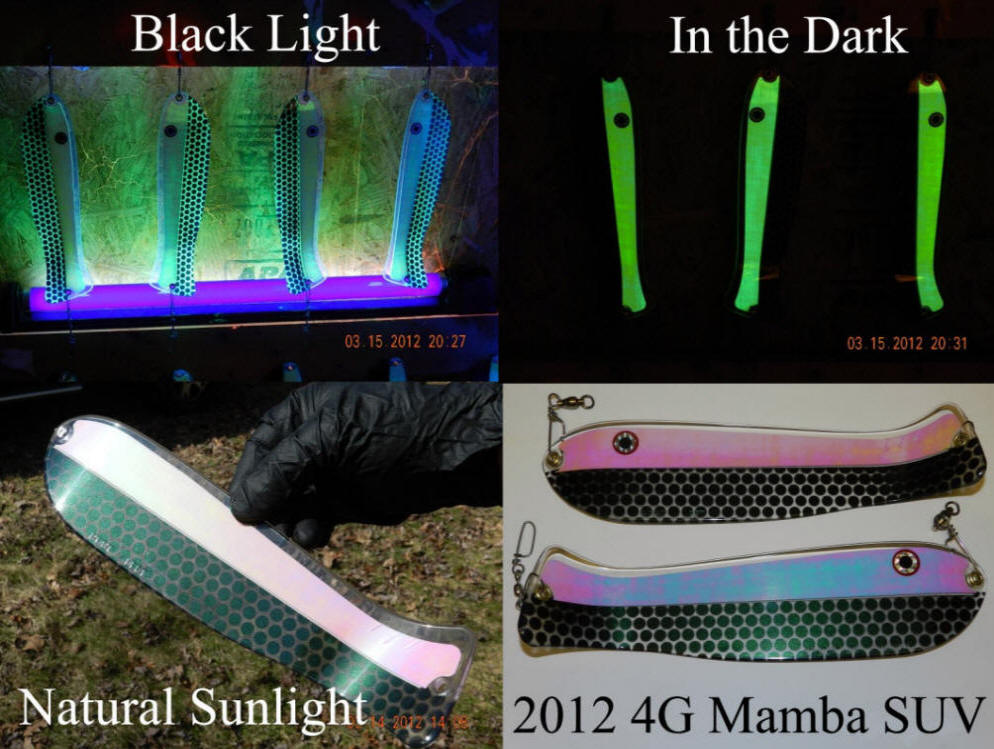 This marks the first time both the blue & green X-Glow flashers and lure tape were photographed side by side for a true reel-impressive comparison.