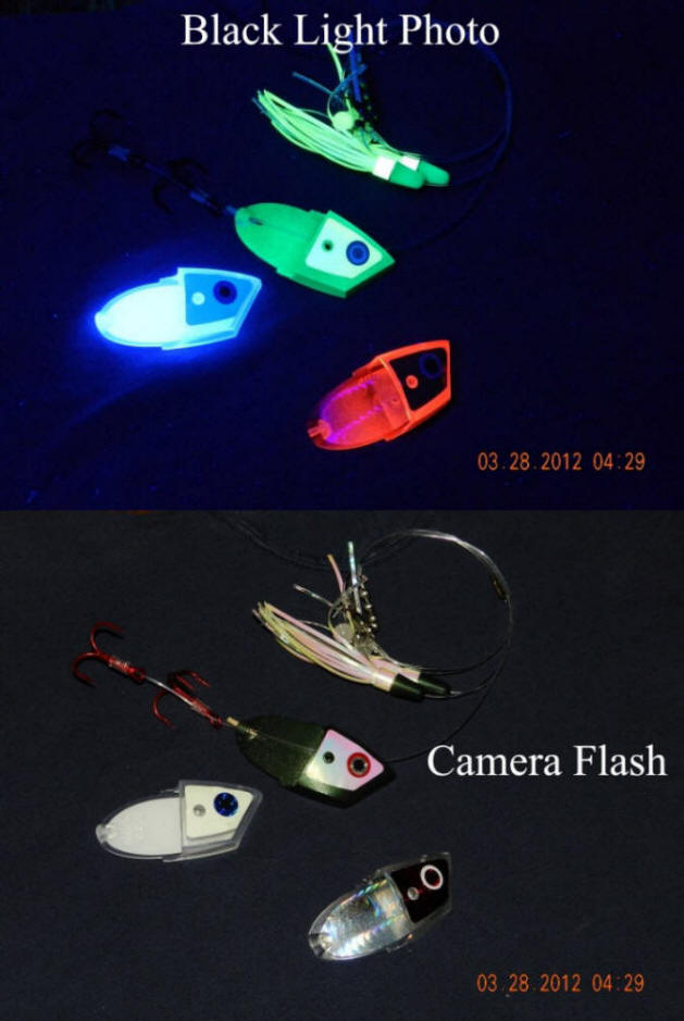 To the best of my knowledge no tackle manufacturer offers the 21st century advancements in red, blue, and green UV reactive colors like we do!