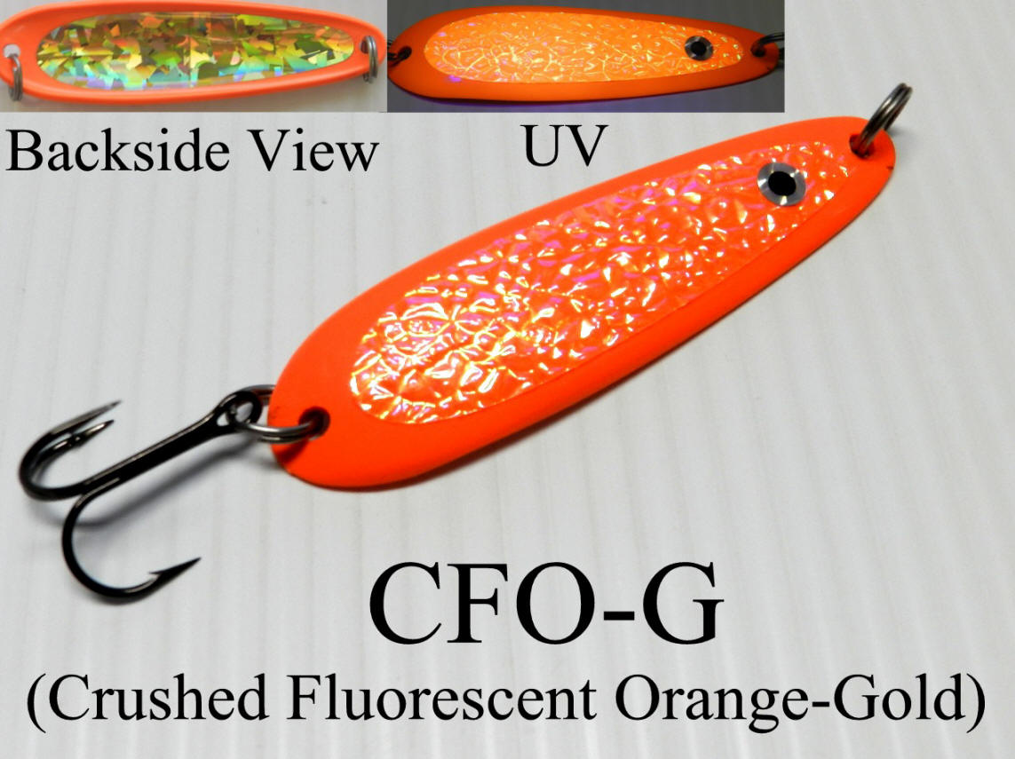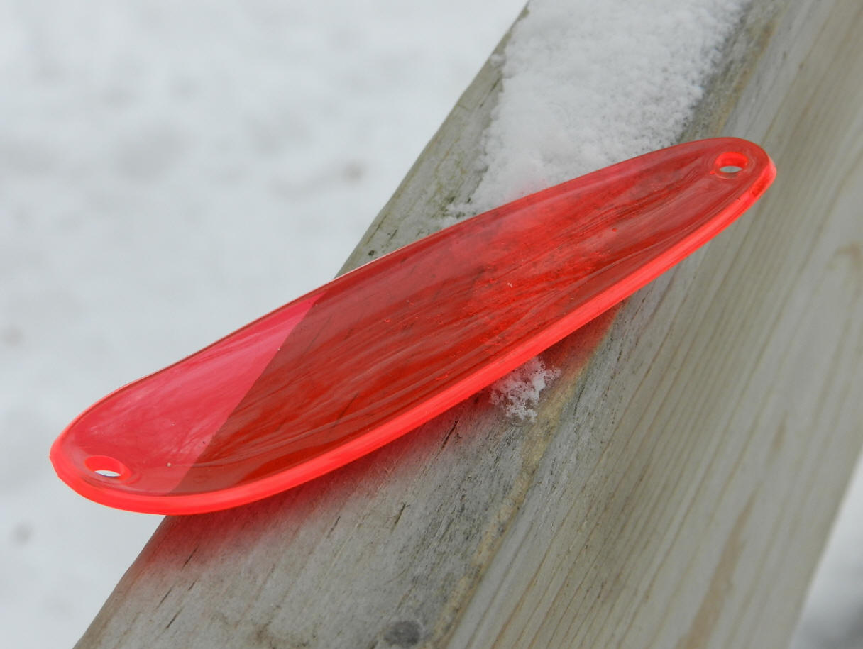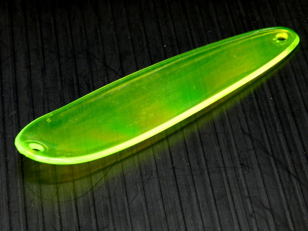 1/12/16  Today's pic show the fiber optic glow edge on my Salmon Buster™ spoons.  This photo was shot on macro with no editing to alter the original visual content.  Photo was snapped on my desk.  It's more noticeable in full sun. Click fiber optic spoon