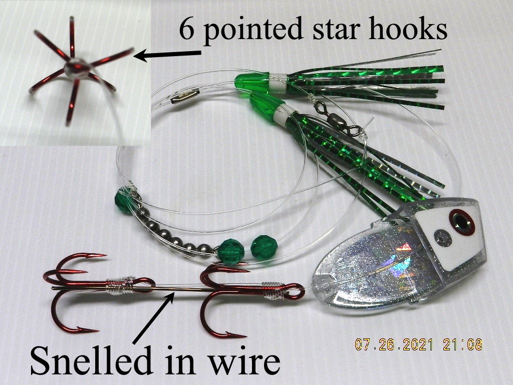 During the 80s and 90s green glo squids were the fleet standard.  So, it was natural for me to gravitate the prototypes in this direction. Click 7/9/21 Grn. Glo ST