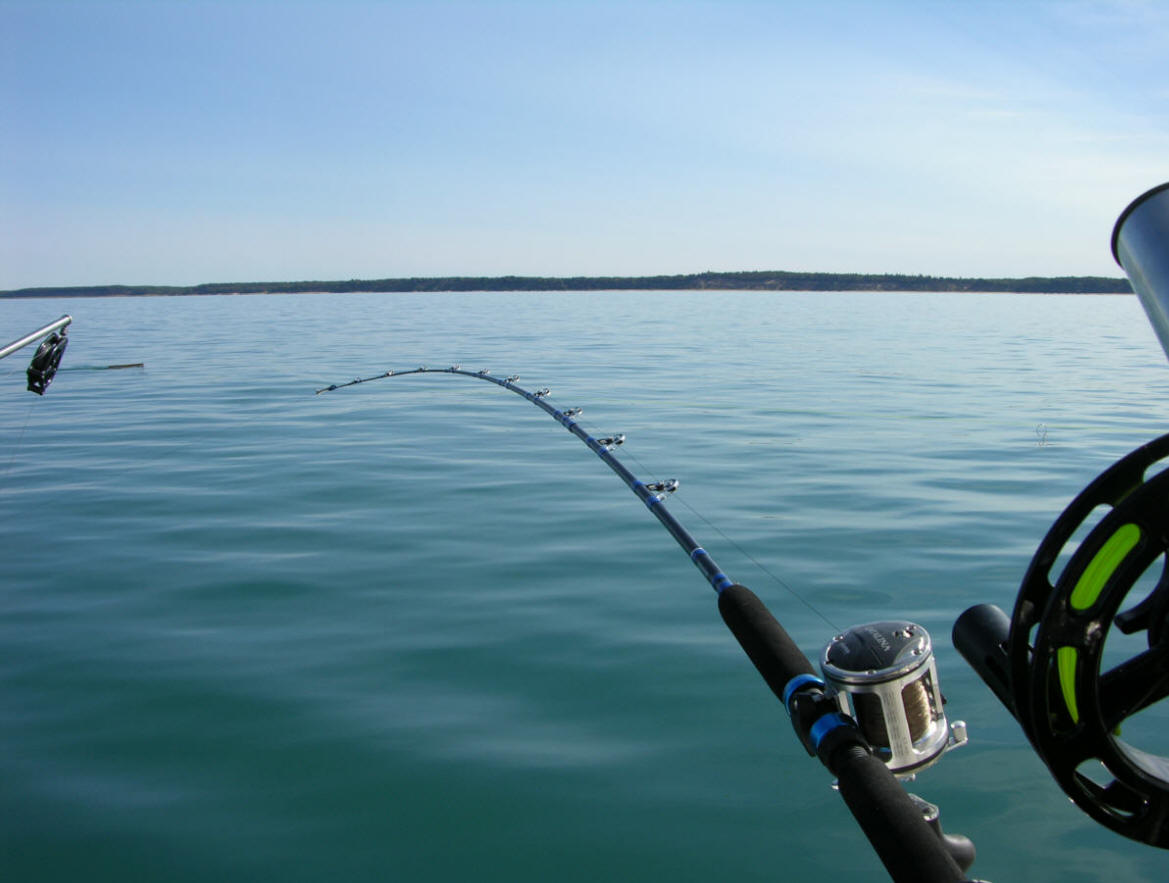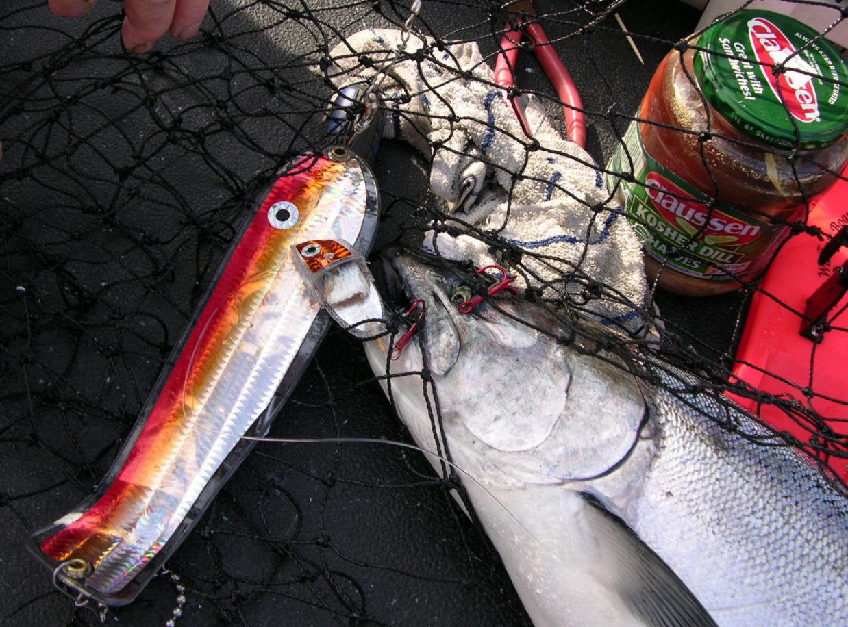 has. I know this is going to be hard to believe, but on my last trip of the season (10/1/09) every bite came off the hot new Monkey Puke meat rig. The conditions were plain lousy for good fishing on 10/1/09 with flat calm tabletop water. Slick flat water does not usually facilitate good action. Reason? We can only guess. Suspecting light is not broken up by the waves and it over-illuminates the baits/lures? The end product of maxed-out light penetration might aid hungry aggressive fish making it too easy to grab a mouthful of baitfish. Anyways, getting back to the 10/1/09 trip we fished