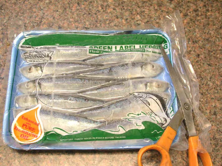 There's a size smaller called Orange Label and those herring are 4 to 5 inches. Green Label (used in this demonstration) is 6 to 7 inch herring.