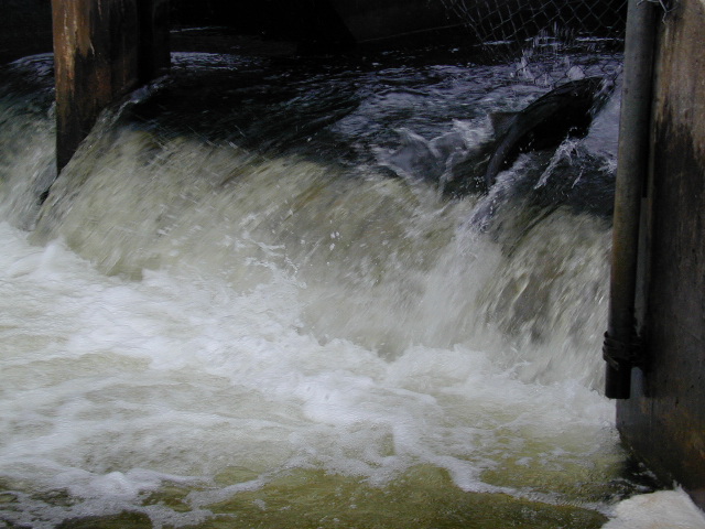 Weir Facts When I was at the weir on 9/22/01, most of the holding pens were pretty full and you can see all the fins sticking up in the photos below of the pens. I consider these Chinooks or Kings to be the smart ones, because they didn't go into my fish box. In the Fall the weir acts as a barrier to the Salmon