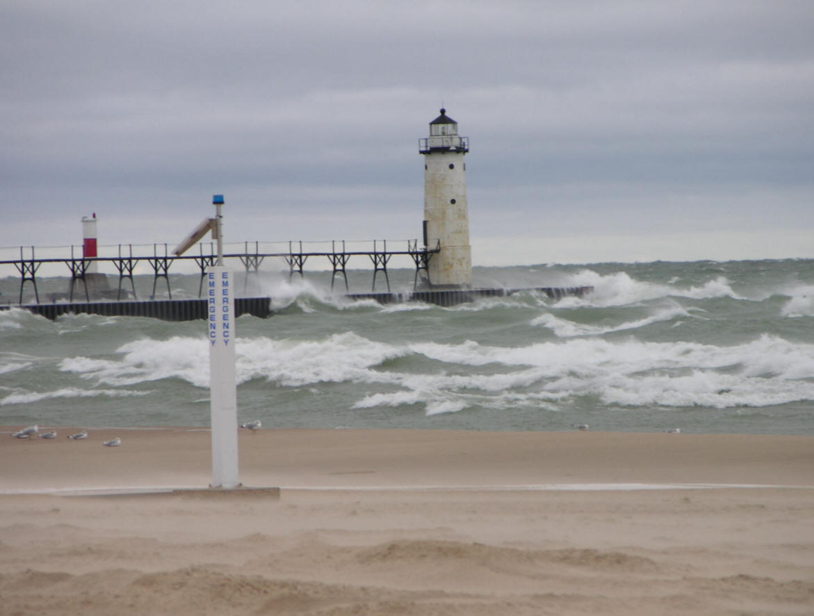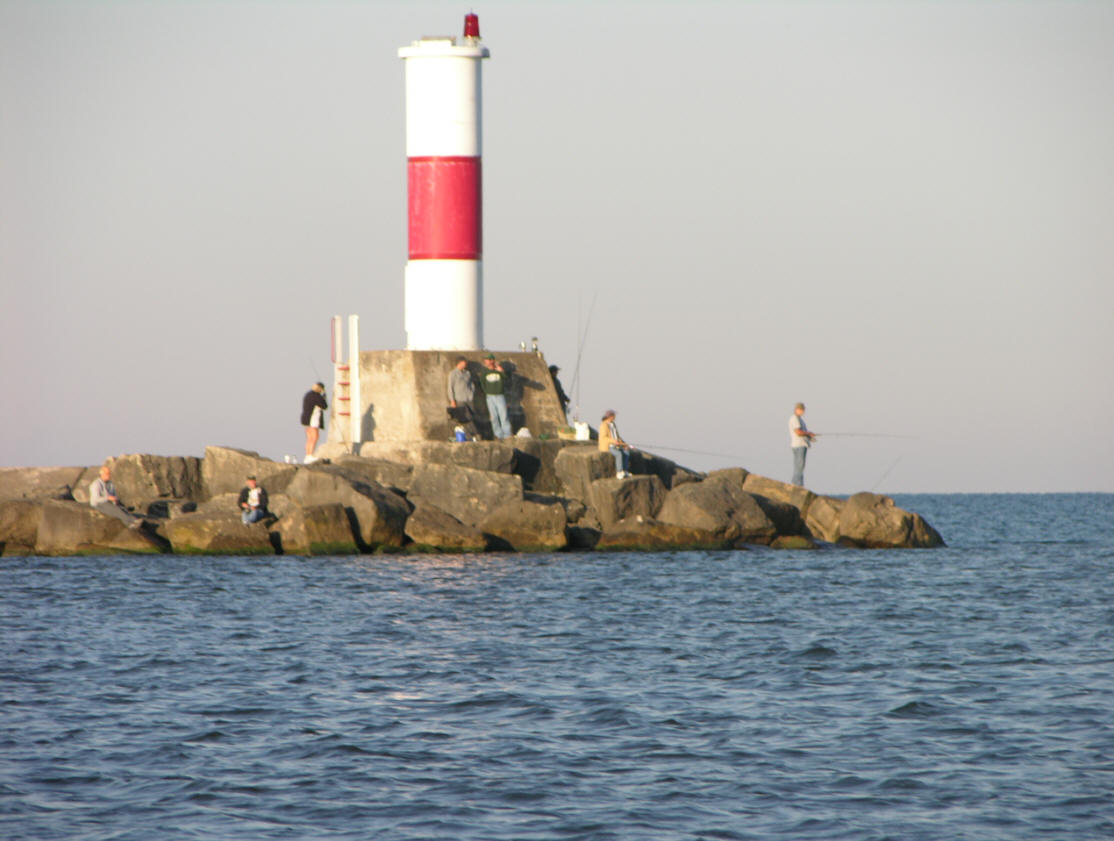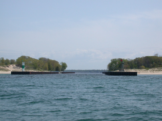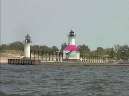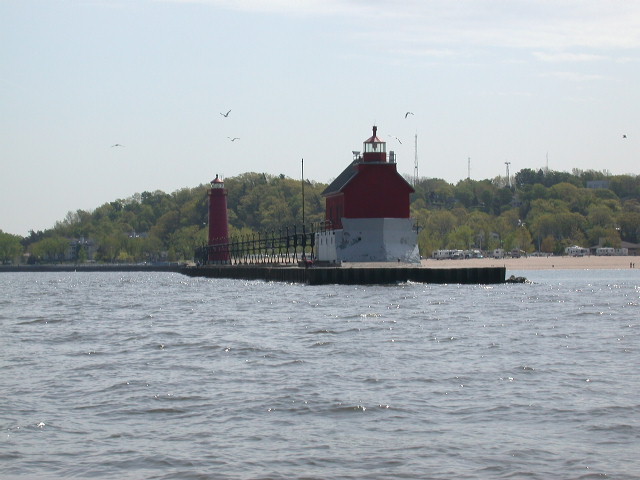 | The page is under construction and will only be finished when I have all port entrance photos of Lake Michigan. This page contains navigational tips & landmarks to go by when traveling to the southern part of Lake Michigan. This is a major journey of about 150 miles by water between Manistee and South Haven. Moved the boat south for the improved fishing Salmon in the southern end of Lake Michigan. The main body of Lake Michigan over 60 foot water depths and deeper was 38 in Manistee to 42 degrees in South Haven, except off Saugatuck where I had 44 degree water off the Kalamazoo River. On the water marina gas prices were $1.87 in Manistee, $1.89 in Muskegon and $1.99 in Grand Haven on May 3, 2003. |